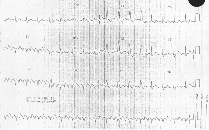 Có một mối quan hệ 04:01 giữa các sóng rung động và QRS, dẫn đến tỷ lệ thất ~ 65 bpm.