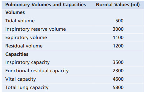 Bảng. Dung tích và thể tích phổi trung bình ở người đàn ông trẻ khỏe mạnh.