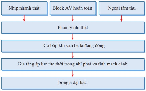 Phân ly nhĩ thất và block nhĩ thất hoàn toàn.